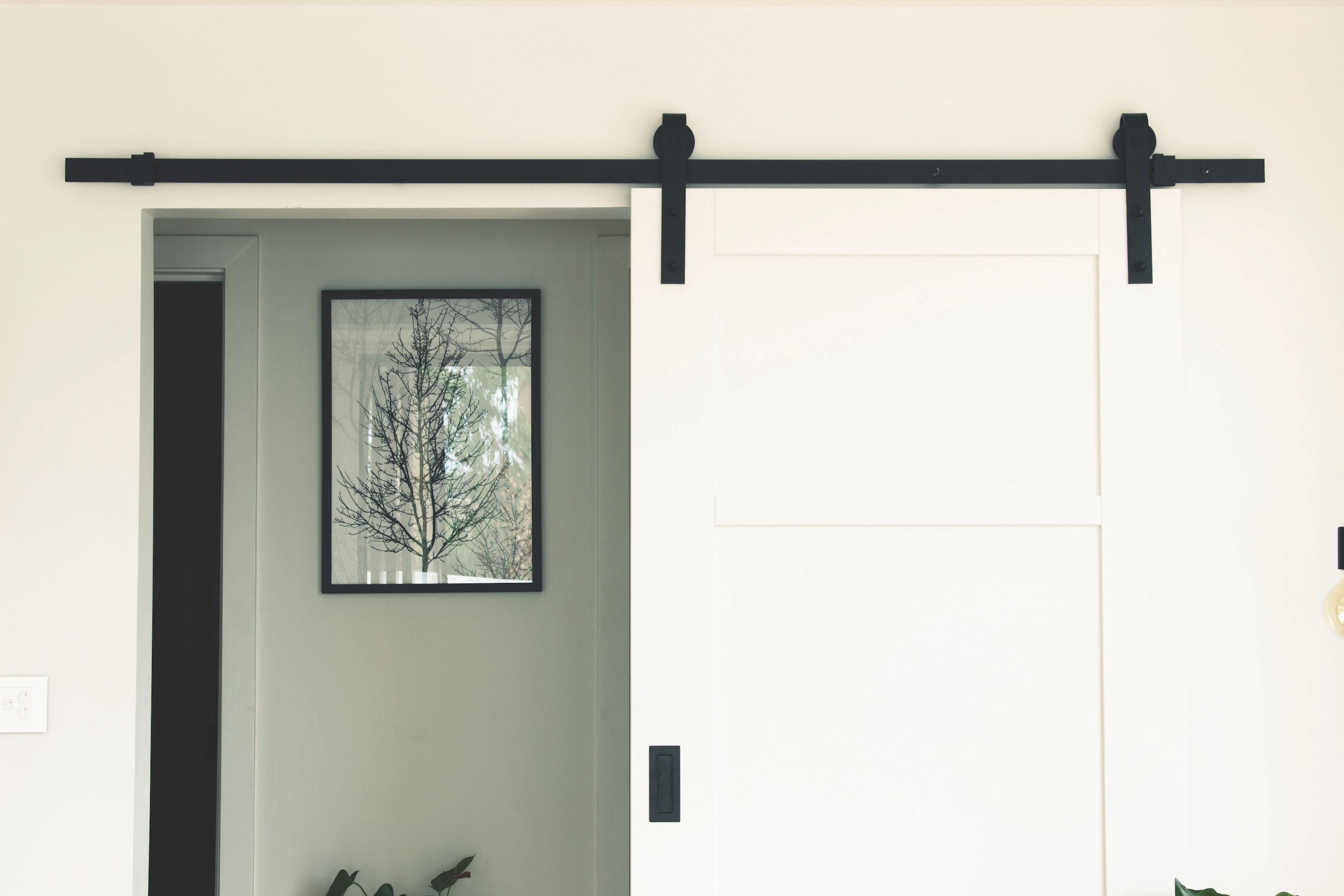 The Lockwood Outland Sliding Door Track Kit incorporates industrial design with the highest standards of quality. Easy to install, the Outland features quiet operation with its nylon bearing wheels and high quality powder coat finish that provides excellent durability. With distinctive appeal, the Outland’s classic barn door look offers convenient functionality and on-trend aesthetics that will add character to any room.